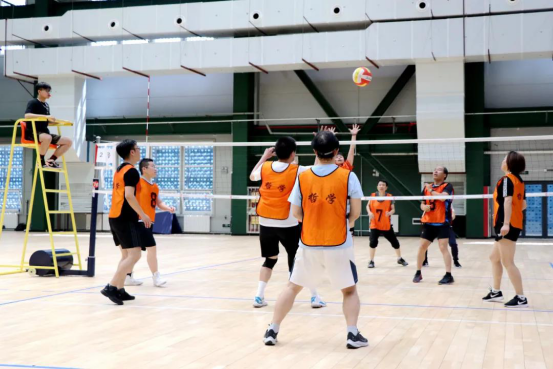 上午首场比赛,我院对阵外国语学院代表队。经过赛前一个月时间的充分准备和积极训练,老师们的击球传球水平和团队协作能力大幅提高。比赛过程中,我院教师找准时机,打出一记记完美扣球,引得掌声阵阵;左击右传,尽显默契与配合。经过半小时的激烈比拼,我院以2:1取胜,实现本次比赛的开门红。