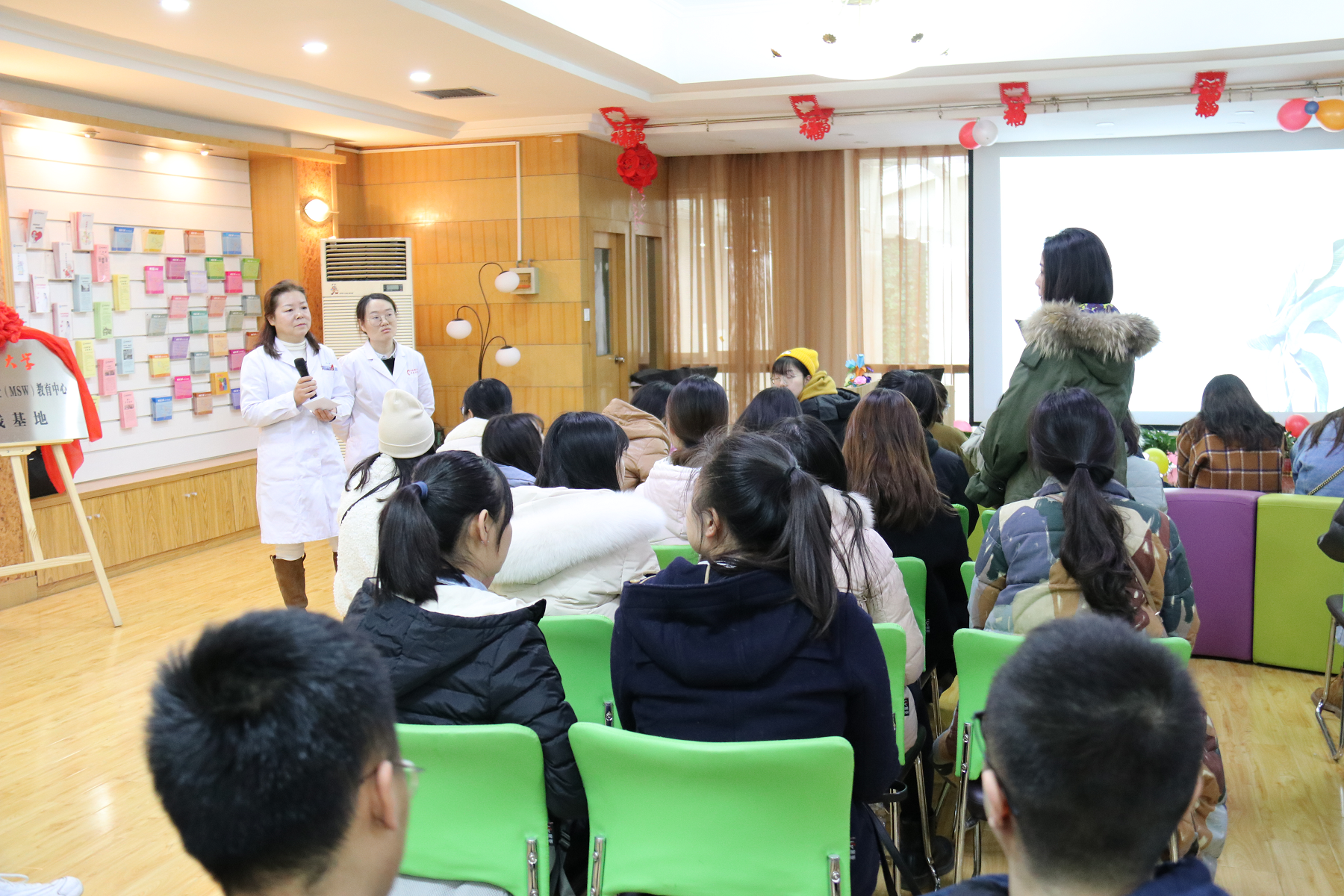 揭牌、签约仪式后,患者服务中心孙晓茹主任带领同学们参观了医院,我校MSW毕业校友、社会工作者乔小梅介绍了肿瘤医院医务社会工作的发展情况,并与同学们进行了深入的互动和交流。