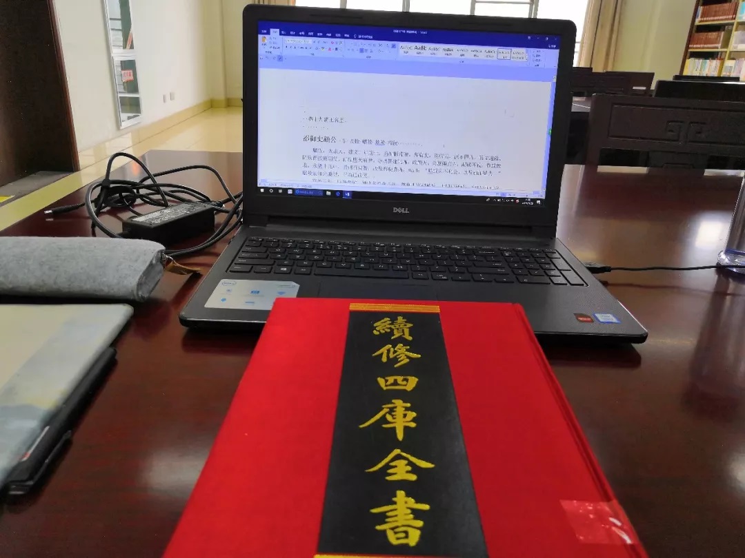 我手上拿着的是一本精装的《续修四库全书》,因为我无法将它带出陕师大五楼这个港澳台库集室,所以也就决定了我每天的工作地点。我们实习的任务是协助王宝峰老师校勘李贽的几本书。主要分作三个步骤来做:一,弄出电子版,并根据已有版本添加句读;二,用我手上这本做底版,将之前版本不同于底版的地方都改正过来;三,再寻找一个别的版本作为校对版,将两者进行校勘。第一步我们在寒假期间已经完成了,所以这一个月我们一直在进行第二步。书的不同版本差异并不大,但很多细枝末节的微妙不同也会有很大的争议。这段时间,我们主要就是找不同,不同的字,少了字或者多了字。每天手上拿着一本纸质,对着电脑的电子版看,一天下来有些疲惫,但通过精看古书,也能习得很多知识。比如我手上拿的这本,它是李贽写的《续藏书》,里面是明史,我自己本来就爱读史。通过通览《续藏书》,我对明史的了解大大地提升了,同时也可以看到李贽对明朝王侯将相的评价,收获颇丰。