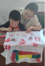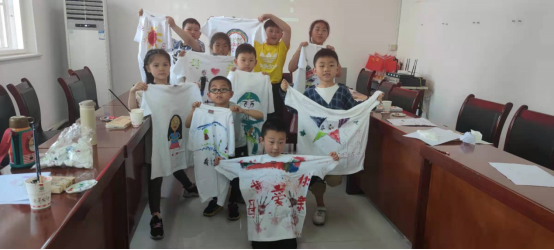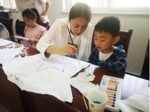 之后,小朋友和家长共同在白T恤上画出“我与妈妈的温暖瞬间”,小朋友们积极展示T恤上的“我们家的温暖事”,和大家共同分享家庭中的点滴温暖。